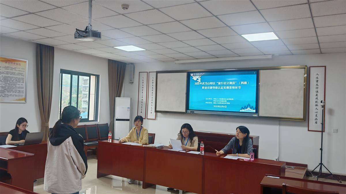 此次考试由武当山特区人社局、特区文旅局联合湖北工业职业技术学院组织开展,考核认定方式以理论试卷和实操答辩进行。内容全面且深入,涵盖了旅行社计调工作中的线路设计、成本核算、资源调度等核心业务知识,同时对考生在武当山历史文化、景点特色、旅游服务规范等方面的讲解能力进行了重点考查,致力于培养出既懂计调运营,又能出色讲解武当山旅游资源的复合型人才。