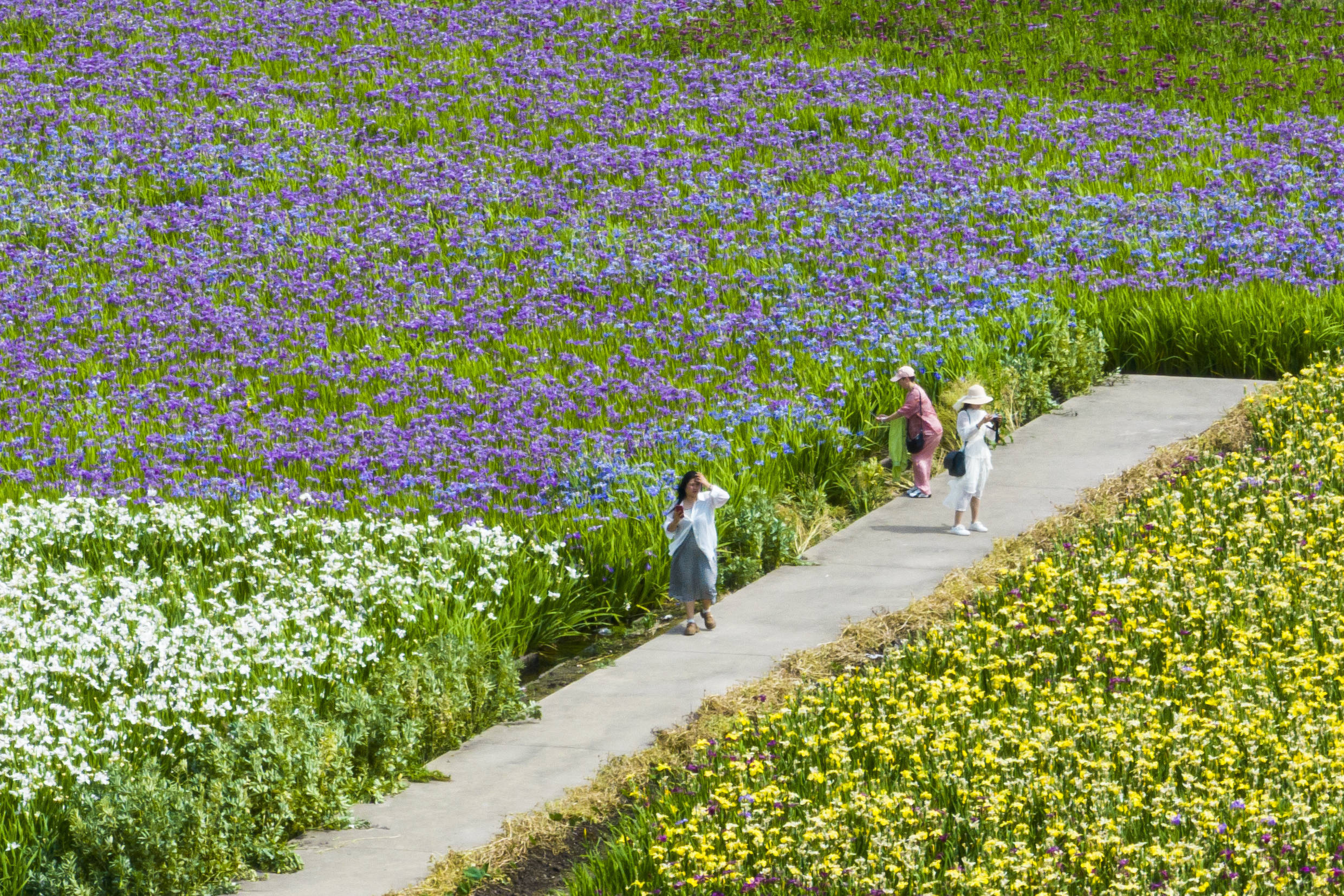 在浙江省宁波市镇海区澥浦镇十七房村,百余亩鸢尾花竞相绽放,色彩斑斓,成为当地乡村旅游的一道亮丽风景线,吸引不少游人前来赏花。