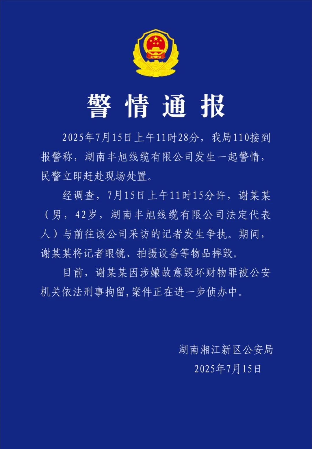 长沙公安通报“记者采访时物品被摔毁”事件:谢某某被依法刑拘中证所长沙公安通报“记者采访时物品被摔毁”事件:谢某某被依法刑拘